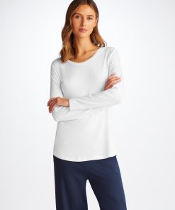 DEREK ROSE Women’s Long Sleeve T-Shirt Lara Micro Modal Stretch White White | WOMENS- Best Sellers