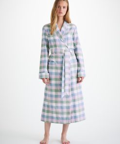 DEREK ROSE Women’s Long Robe Kelburn 45 Brushed Cotton Green Sage Green | WOMENS- Best Sellers