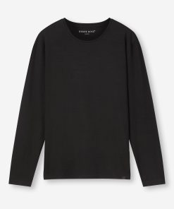 DEREK ROSE Men’s Long Sleeve T-Shirt Basel Micro Modal Stretch Black Black | MENS- Best Sellers