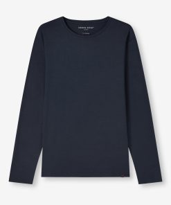 DEREK ROSE Men’s Long Sleeve T-Shirt Basel Micro Modal Stretch Navy Navy | MENS- Best Sellers