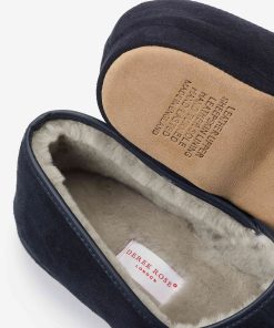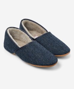 DEREK ROSE Men’s Slippers Crawford 2 Harris Tweed Sheepskin Navy Navy | MENS- Best Sellers