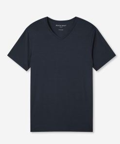DEREK ROSE Men’s V-Neck T-Shirt Basel Micro Modal Stretch Navy Navy | MENS- Best Sellers