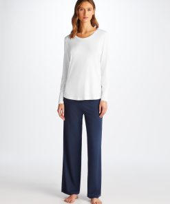 DEREK ROSE Women’s Long Sleeve T-Shirt Lara Micro Modal Stretch White White | WOMENS- Best Sellers