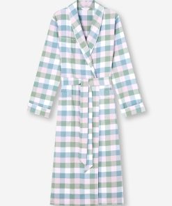 DEREK ROSE Women’s Long Robe Kelburn 45 Brushed Cotton Green Sage Green | WOMENS- Best Sellers