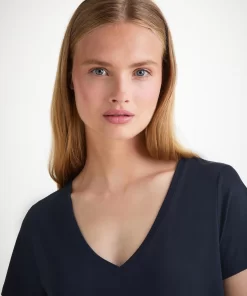 DEREK ROSE Women’s V-Neck Sleep T-Shirt Lara Micro Modal Stretch Navy Navy | WOMENS- Best Sellers