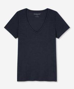 DEREK ROSE Women’s V-Neck Sleep T-Shirt Lara Micro Modal Stretch Navy Navy | WOMENS- Best Sellers
