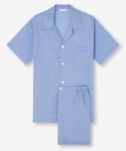 DEREK ROSE Men’s Short Pajamas Amalfi Cotton Batiste Blue Mid Blue | MENS- Best Sellers