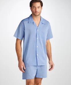 DEREK ROSE Men’s Short Pajamas Amalfi Cotton Batiste Blue Mid Blue | MENS- Best Sellers