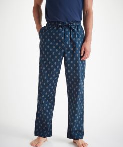 DEREK ROSE Men’s Lounge Pants Cotton Batiste Navy Sailor’s Knot Print Navy | MENS- Gifts for Him