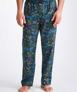 DEREK ROSE Men’s Lounge Pants Cotton Batiste Multi Midnight Jungle Print Multi | MENS- Gifts for Him