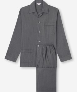 DEREK ROSE Men’s Classic Fit Pajamas Balmoral Brushed Cotton Charcoal Charcoal | MENS- Gifts for Him