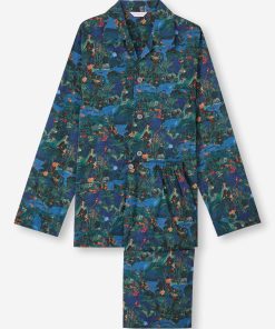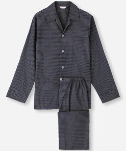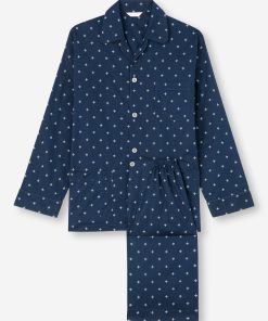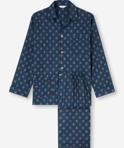 DEREK ROSE Men’s Classic Fit Pajamas Cotton Batiste Navy Badge Print Navy | MENS- Gifts for Him