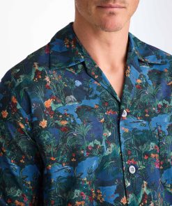 DEREK ROSE Men’s Classic Fit Pajamas Cotton Batiste Navy Badge Print Navy | MENS- Gifts for Him
