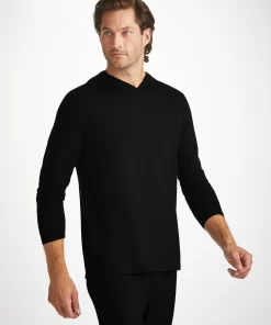 DEREK ROSE Men’s Pullover Hoodie Basel Micro Modal Stretch Black Black | MENS- Best Sellers