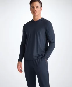 DEREK ROSE Men’s Pullover Hoodie Basel Micro Modal Stretch Navy Navy | MENS- Gifts for Him