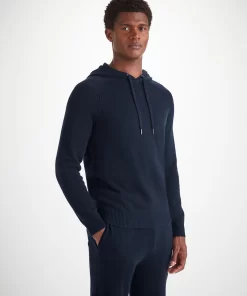 DEREK ROSE Men’s Pullover Hoodie Dominic Cashmere Dark Blue Dark Blue | MENS- Gifts for Him