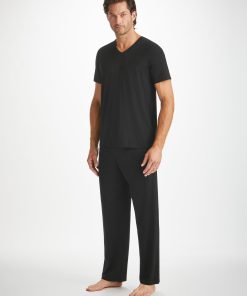 DEREK ROSE Men’s V-Neck T-Shirt Basel Micro Modal Stretch Black Black | MENS- Best Sellers