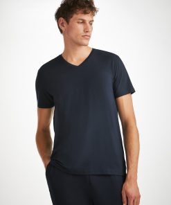 DEREK ROSE Men’s V-Neck T-Shirt Basel Micro Modal Stretch Navy Navy | MENS- Best Sellers