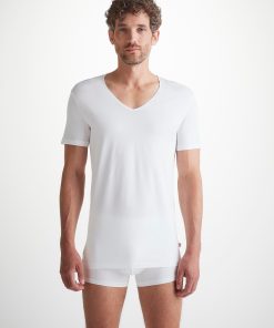 DEREK ROSE Men’s Underwear V-Neck T-Shirt Alex Micro Modal Stretch White White | MENS- Best Sellers