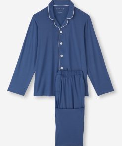 DEREK ROSE Men’s Classic Fit Pajamas Kelburn 46 Brushed Cotton Blue Light Blue | MENS- Pajamas
