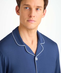 DEREK ROSE Men’s Classic Fit Pajamas Cotton Batiste Blue Sea Friends Print Mid Blue | MENS- Pajamas