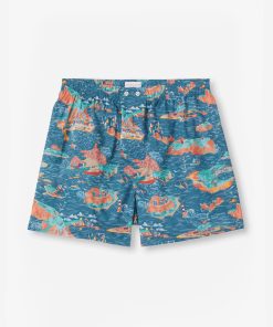 DEREK ROSE Men’s Classic Fit Boxers Cotton Batiste Navy Rope Print Navy | MENS- Boxer Shorts
