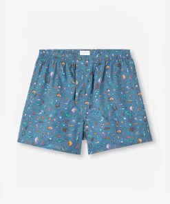 DEREK ROSE Men’s Classic Fit Boxers Felsted 3 Cotton Blue Mid Blue | MENS- Boxer Shorts