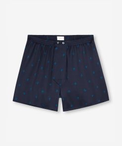 DEREK ROSE Men’s Classic Fit Boxers Cotton Jacquard Navy Rose Star Pattern Navy | MENS- Boxer Shorts