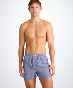 DEREK ROSE Men’s Classic Fit Boxers Gingham Cotton Blue Light Blue | MENS- Boxer Shorts