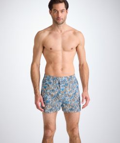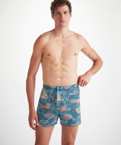 DEREK ROSE Men’s Classic Fit Boxers Royal 223 Cotton Turquoise Turquoise | MENS- Boxer Shorts