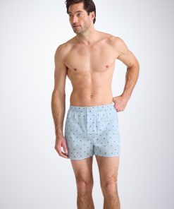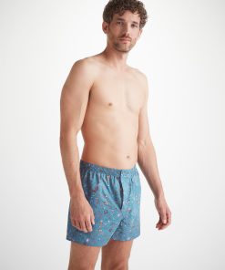 DEREK ROSE Men’s Classic Fit Boxers Felsted 3 Cotton Blue Mid Blue | MENS- Boxer Shorts