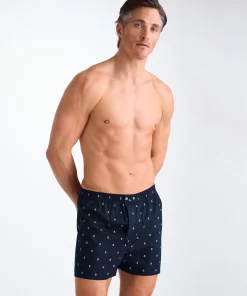 DEREK ROSE Men’s Classic Fit Boxers Cotton Jacquard Navy Rose Star Pattern Navy | MENS- Boxer Shorts
