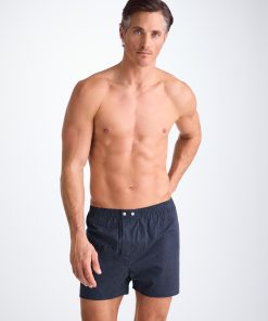 DEREK ROSE Men’s Classic Fit Boxers Cotton Batiste Navy Pin Dot Print Navy | MENS- Boxer Shorts