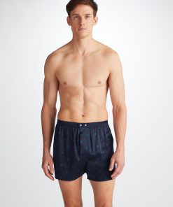 DEREK ROSE Men’s Classic Fit Boxers Brindisi 106 Silk Satin Navy Navy | MENS- Boxer Shorts