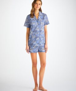 DEREK ROSE Women’s Short Pajamas Cotton Batiste Blue Island Hopping Print Mid Blue | WOMENS- Pajamas