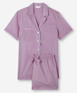 DEREK ROSE Women’s Short Pajamas Cotton Batiste Blue Island Hopping Print Mid Blue | WOMENS- Pajamas