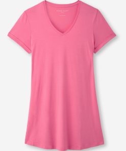 DEREK ROSE Women’s V-Neck Sleep T-Shirt Lara Micro Modal Stretch Navy Navy | WOMENS- Best Sellers