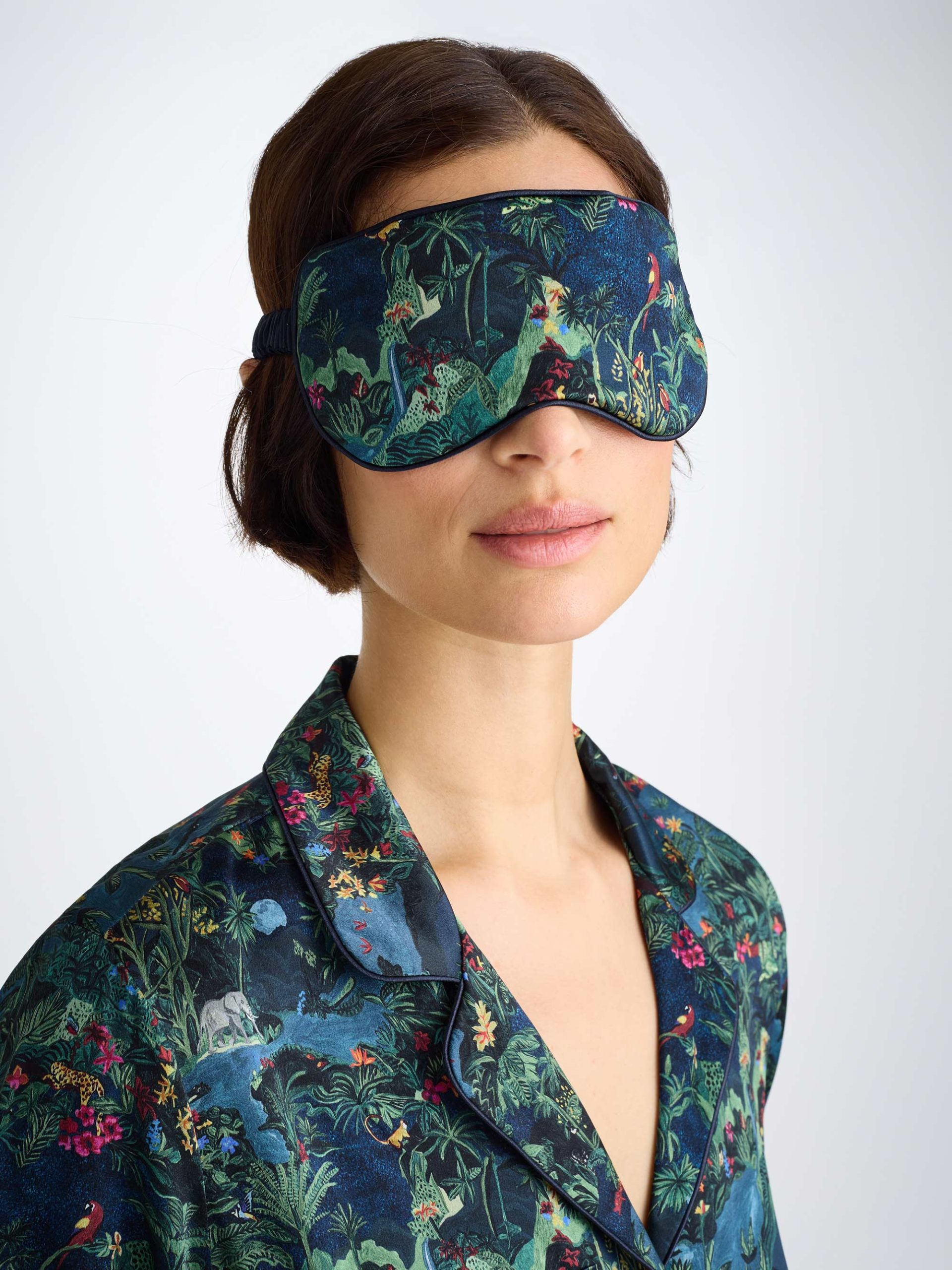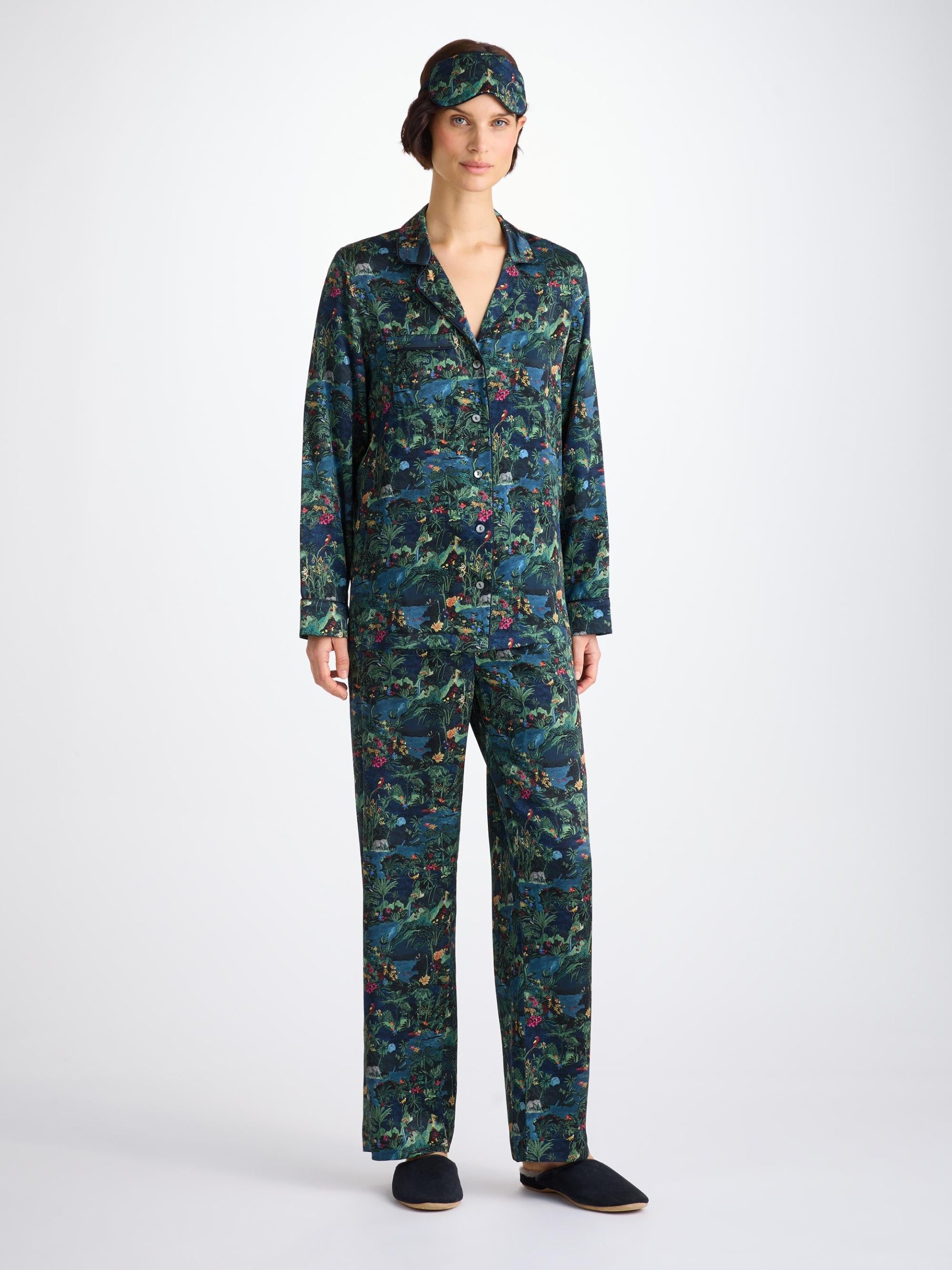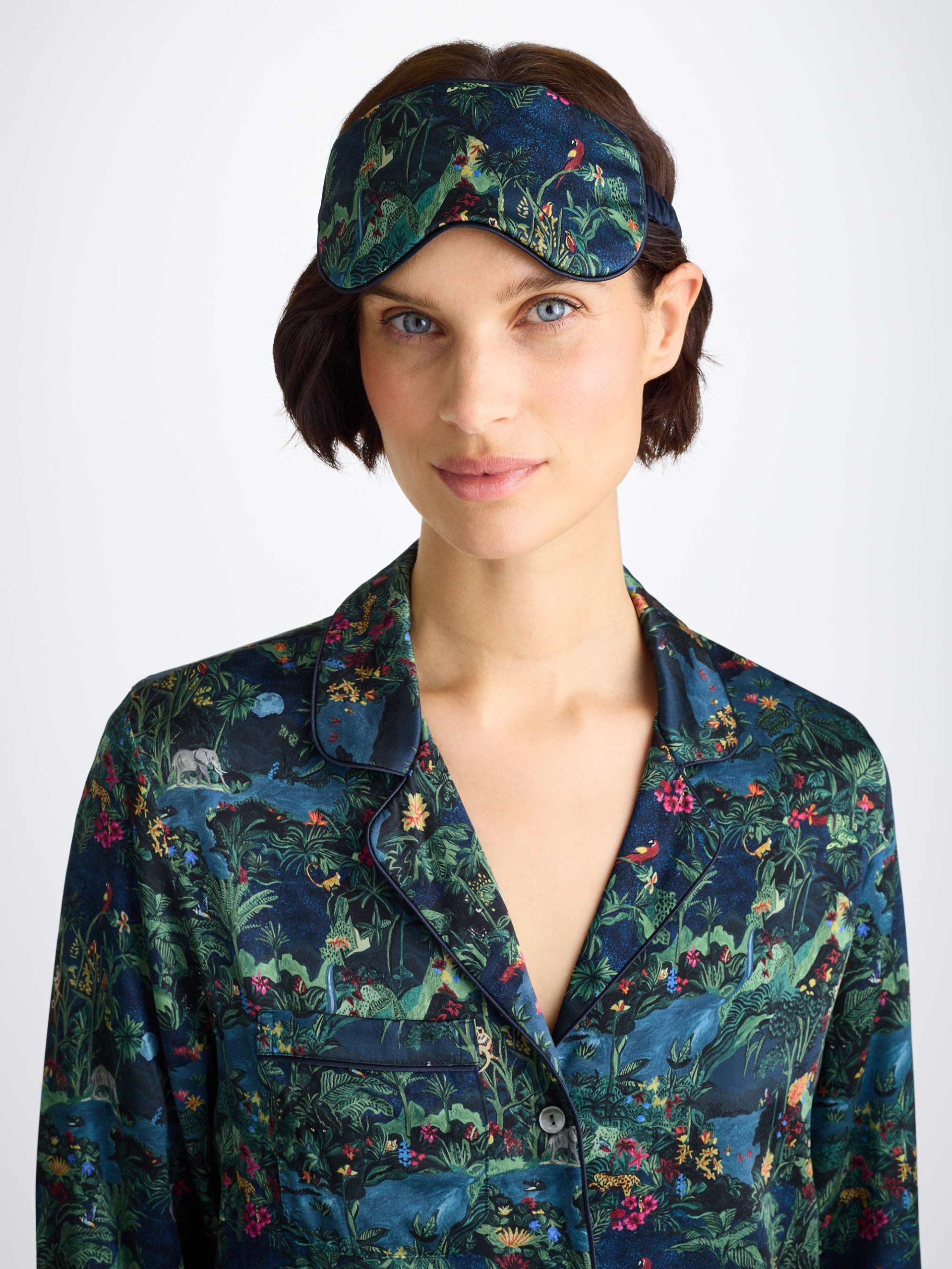 Featuring our midnight jungle print, hand painted with acrylic paint by our London design team. Full of depth and hidden details, explore the midnight jungle.