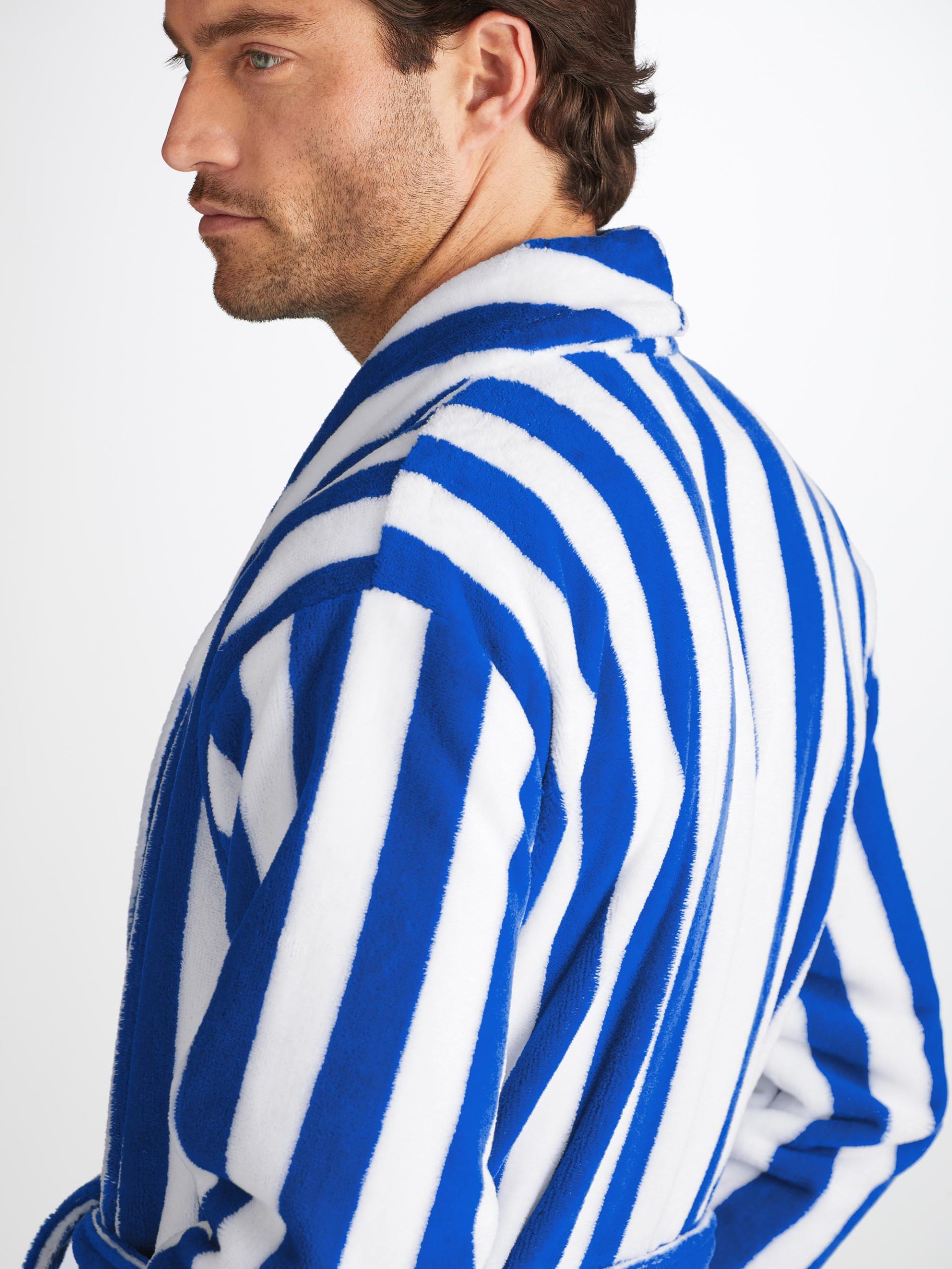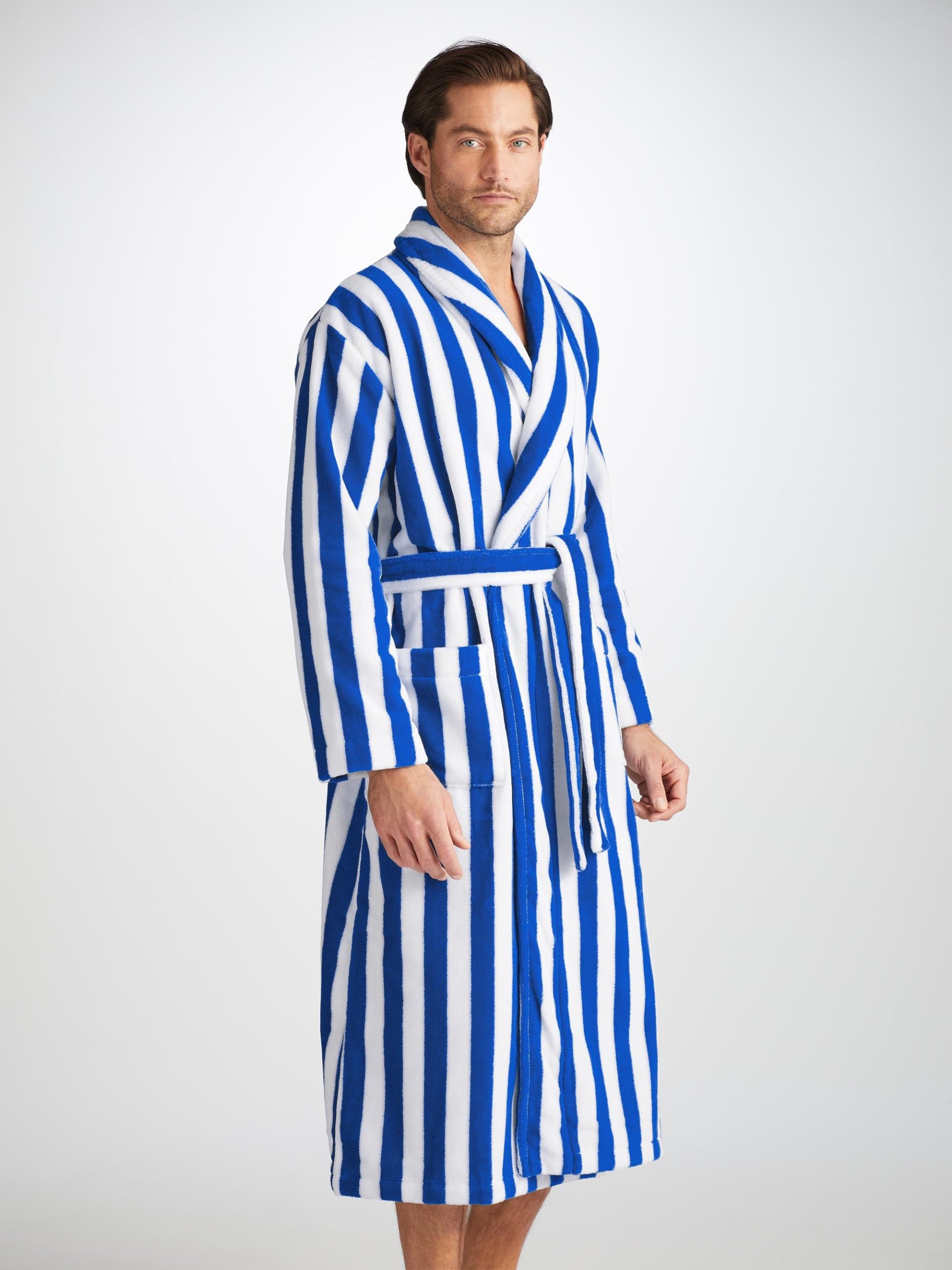 DEREK ROSE Men’s Bathrobe Aston Terry Cotton Blue Blue | MENS- Gifts for Him