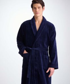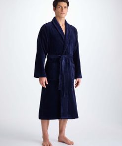 DEREK ROSE Men’s Bathrobe Triton 10 Terry Cotton Navy Navy | MENS- Best Sellers