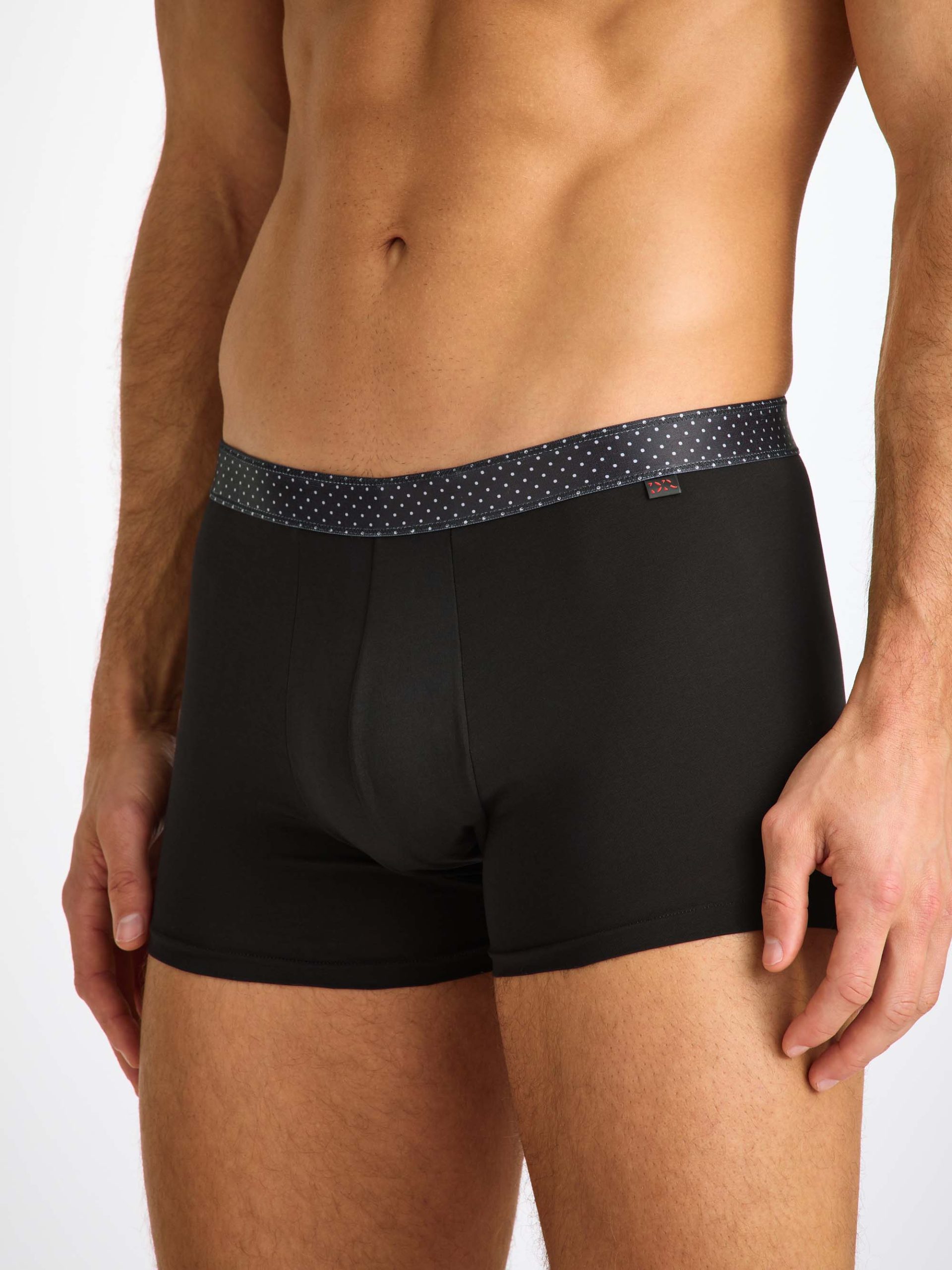 DEREK ROSE Men’s Boxer Briefs Band 65 Pima Cotton Stretch Black Black | MENS- Boxer Briefs
