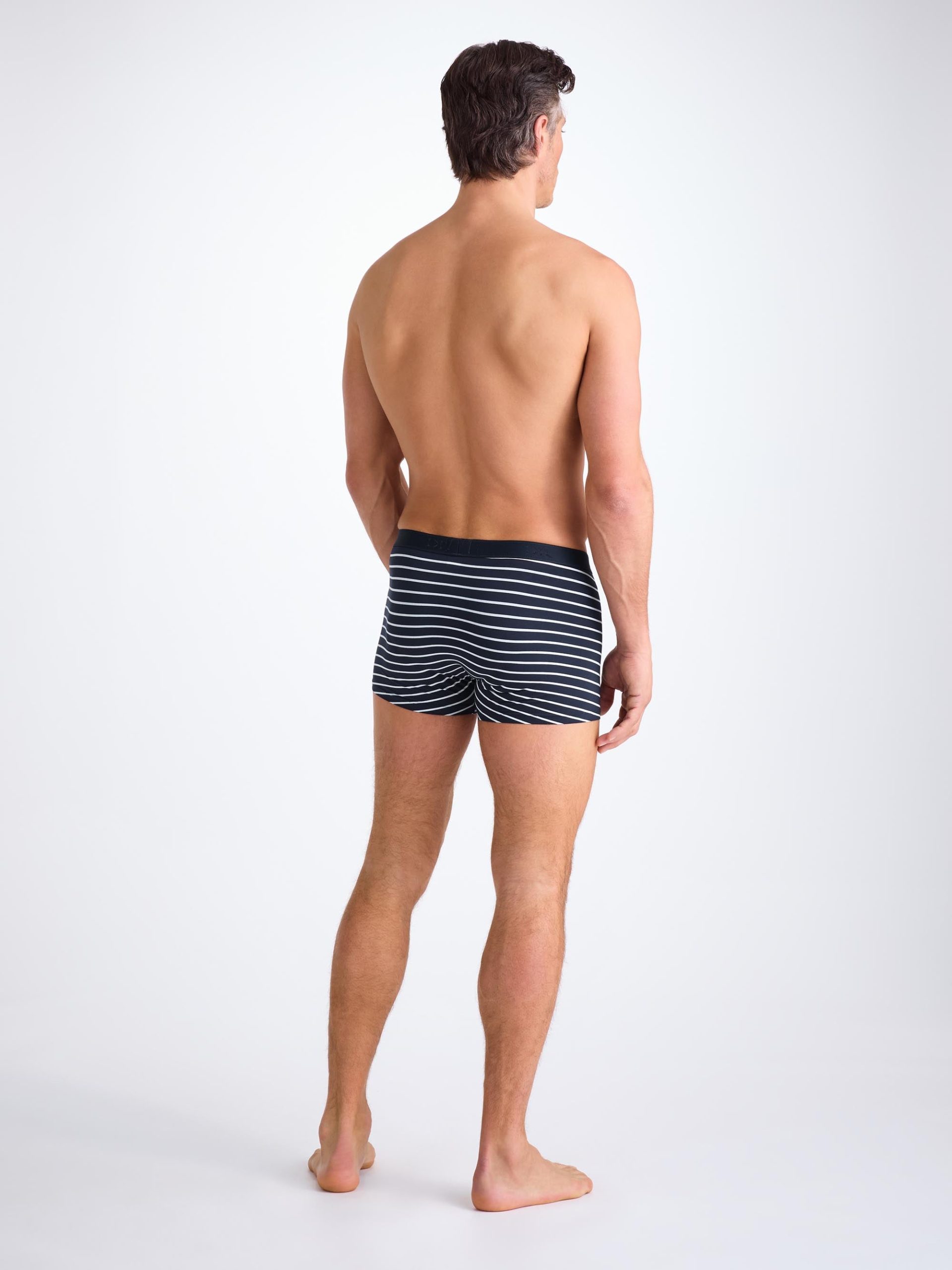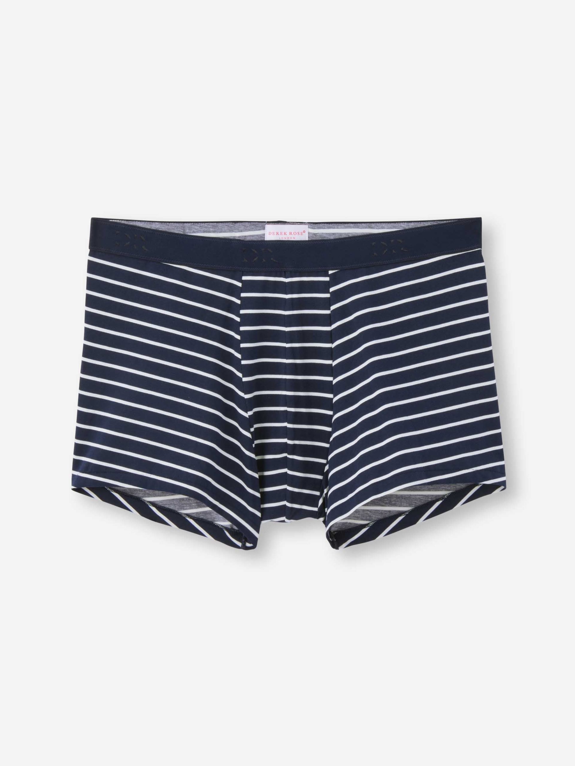 DEREK ROSE Men’s Boxer Briefs Cotton Navy Stripe Print Navy | MENS- Boxer Briefs