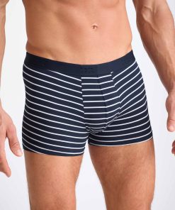 For those who prefer their boxer briefs with shorter legs, our cotton stretch boxer briefs combines a closed front with a streamlined, shorter leg. Featuring a classic navy and white toned stripe print.
