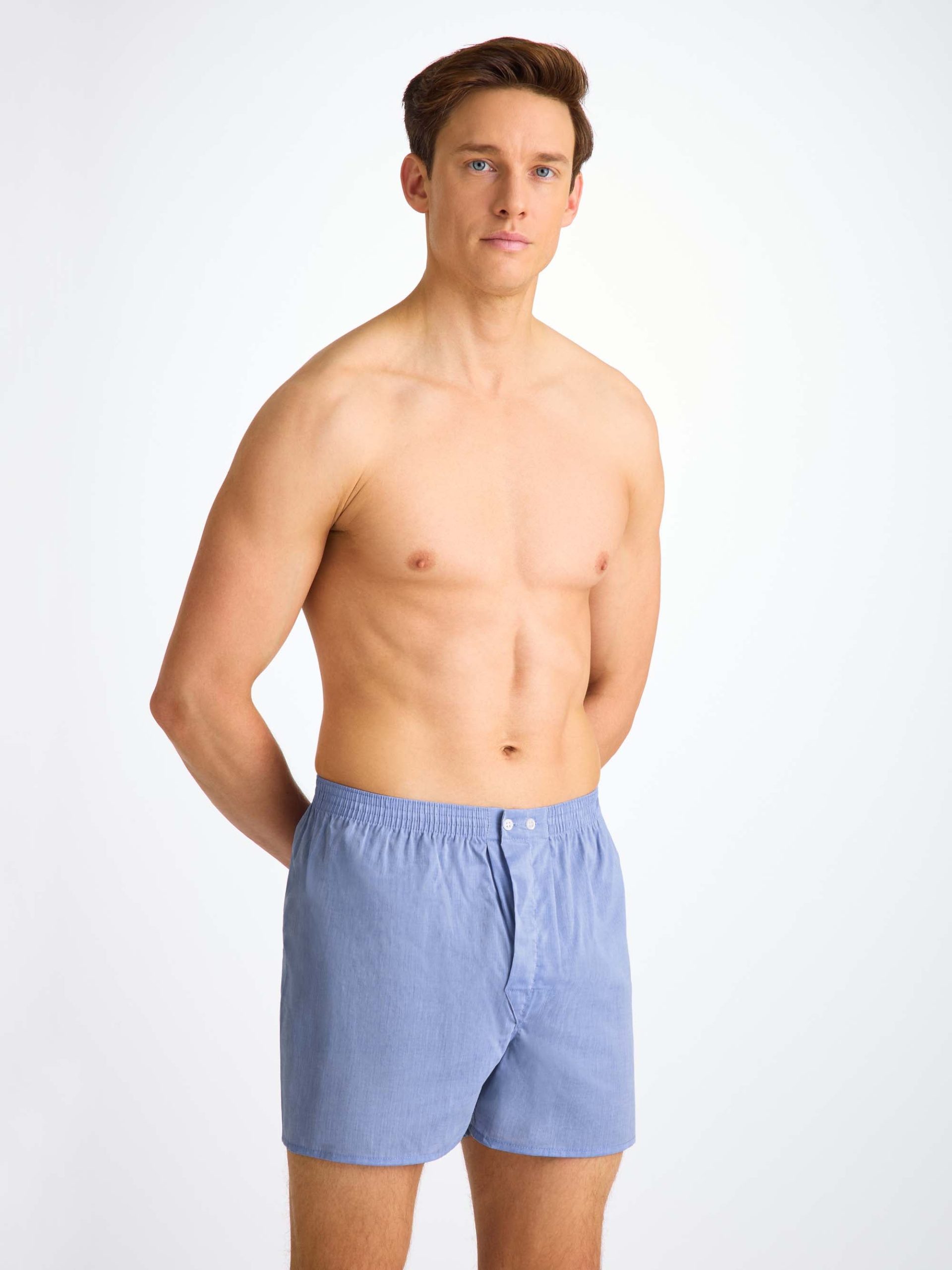 DEREK ROSE Men’s Classic Fit Boxers Amalfi Cotton Batiste Blue Mid Blue | MENS- Best Sellers