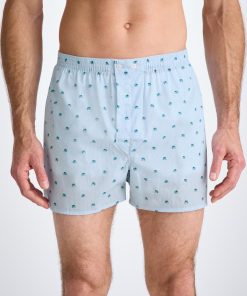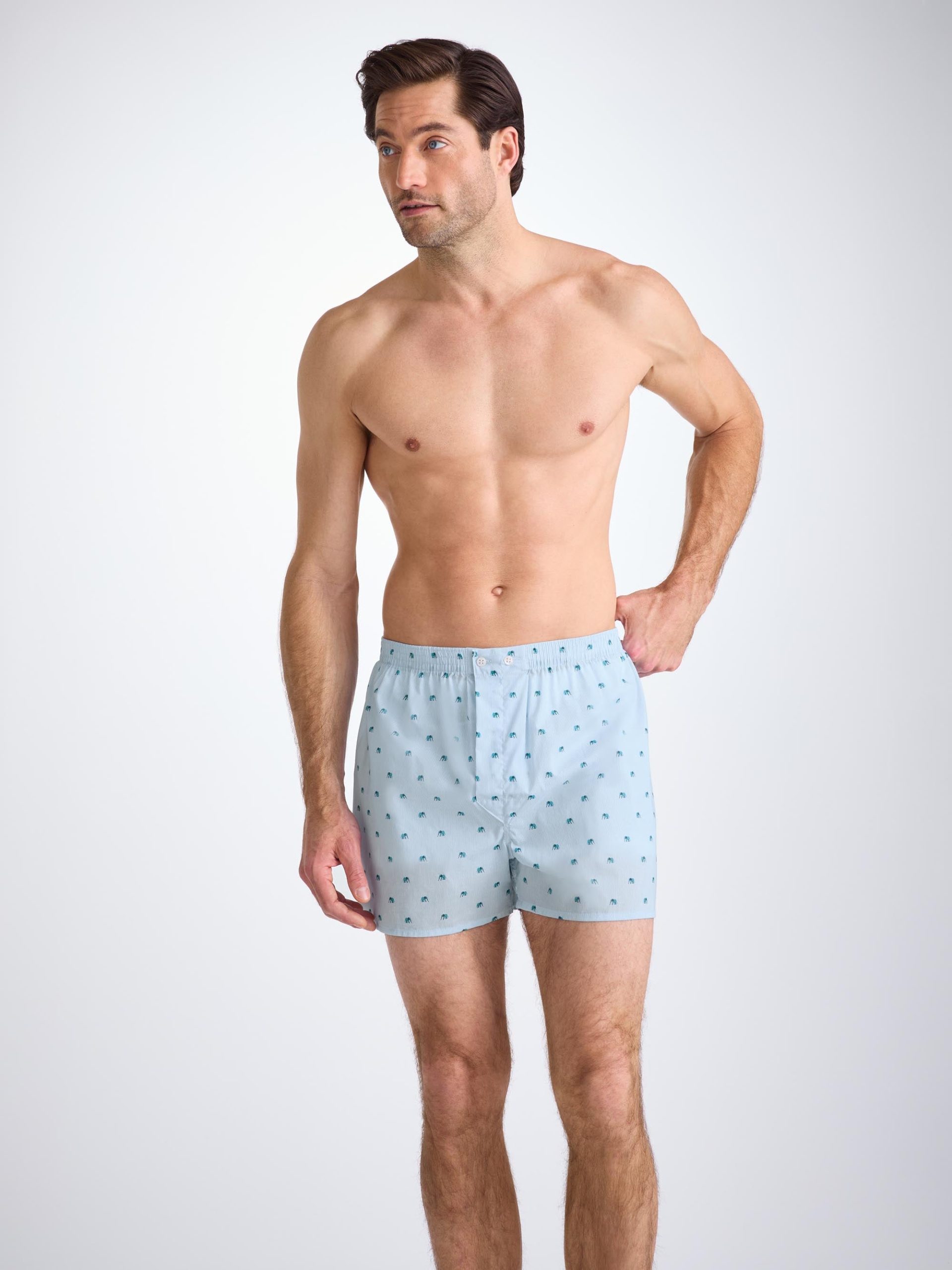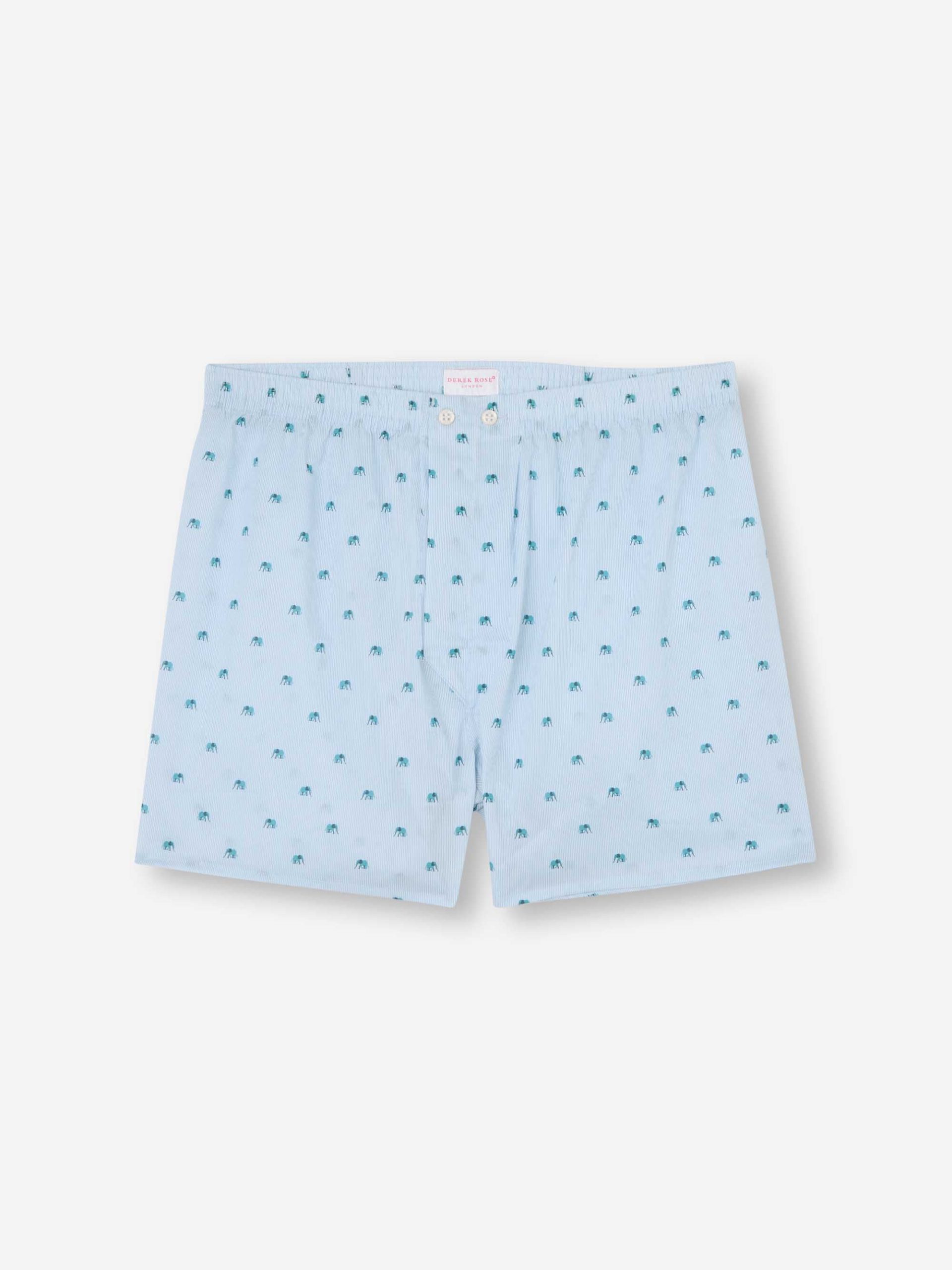 DEREK ROSE Men’s Classic Fit Boxers Cotton Batiste Blue Elephant Print Light Blue | MENS- Boxer Shorts