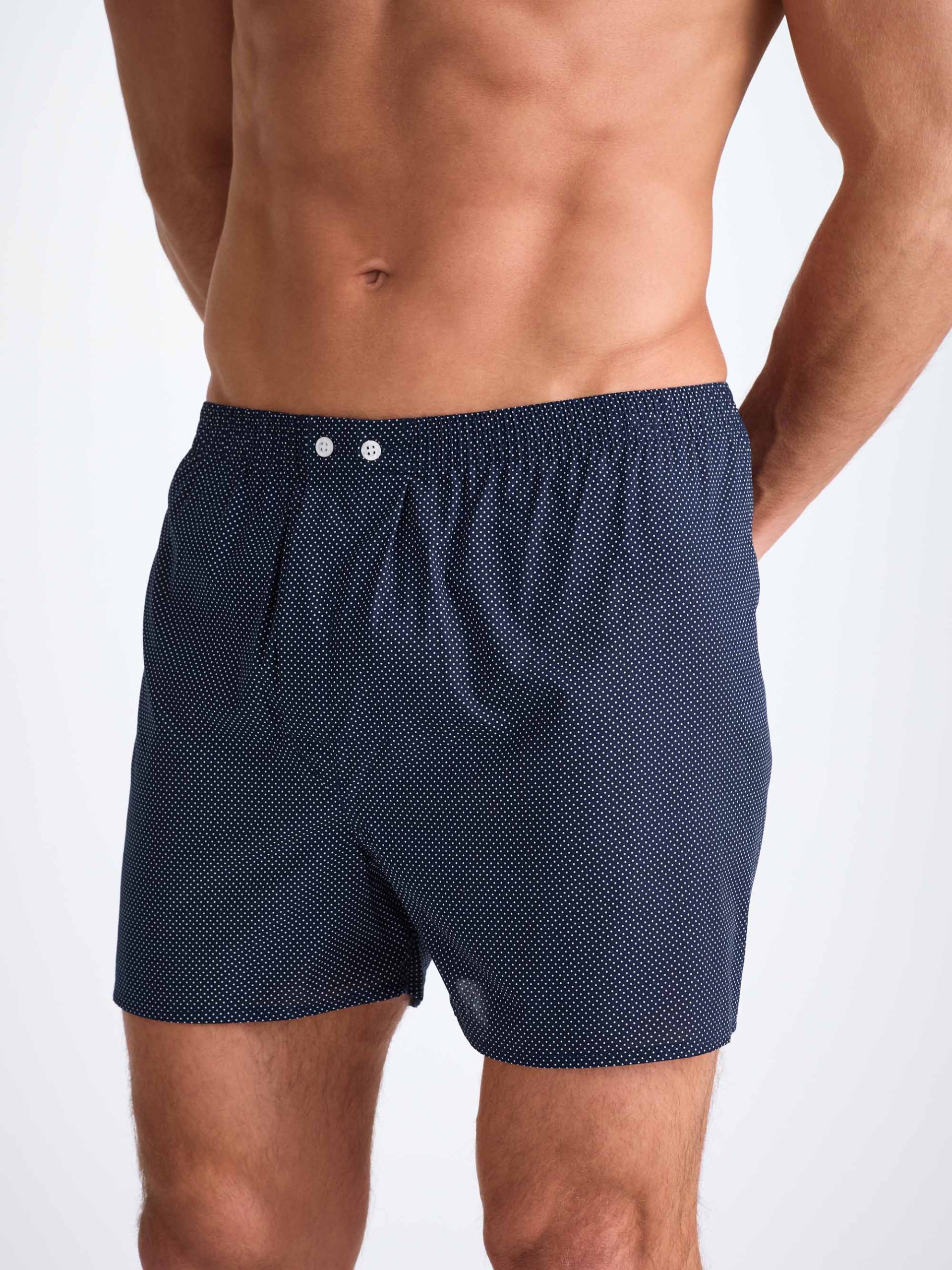 DEREK ROSE Men’s Classic Fit Boxers Cotton Batiste Navy Pin Dot Print Navy | MENS- Boxer Shorts