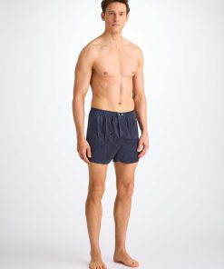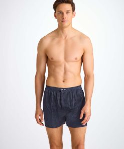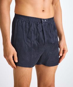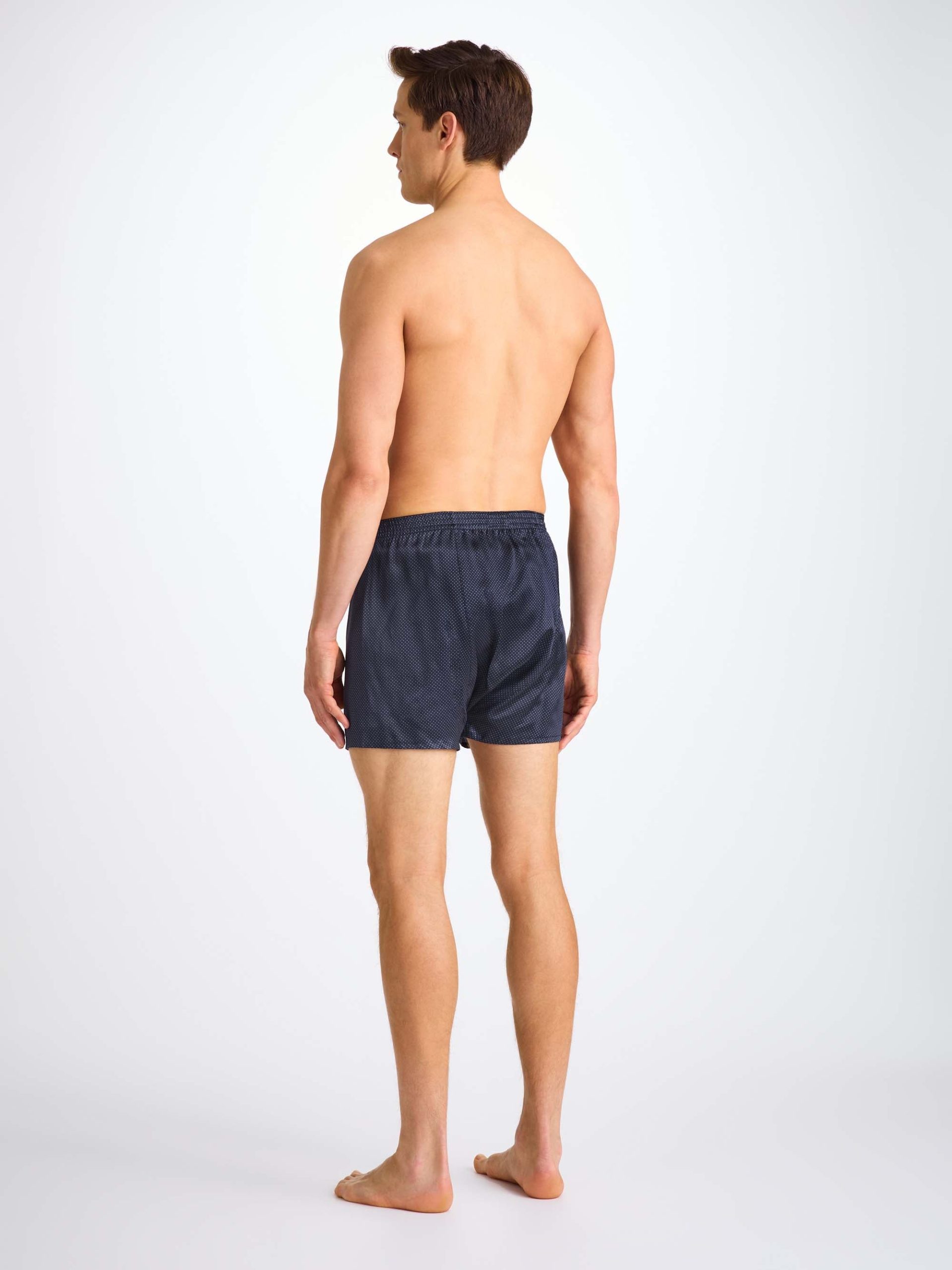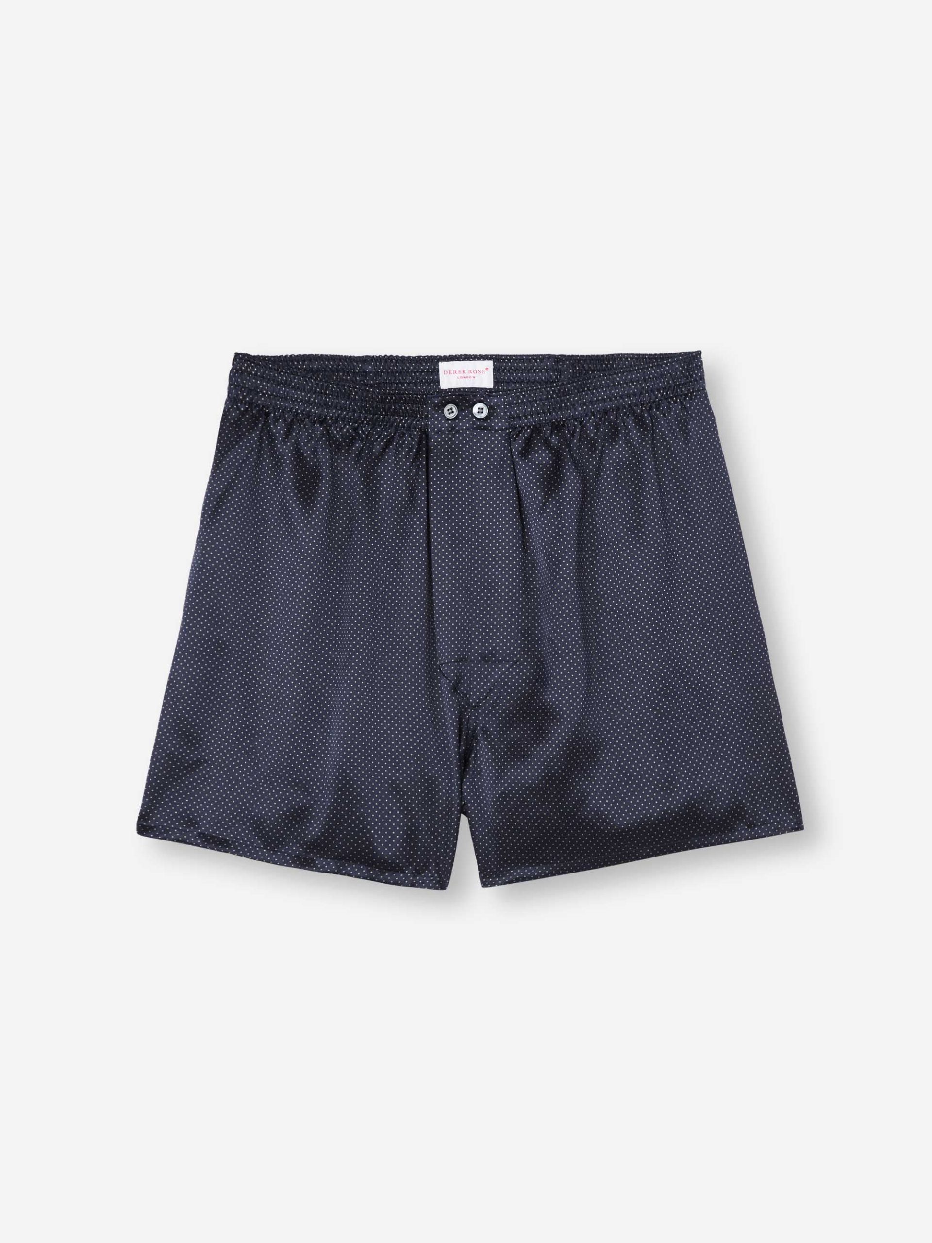 DEREK ROSE Men’s Classic Fit Boxers Silk Satin Navy Micro Dot Print Navy | MENS- Boxer Shorts