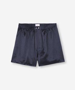 DEREK ROSE Men’s Classic Fit Boxers Silk Satin Navy Micro Dot Print Navy | MENS- Boxer Shorts