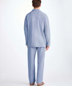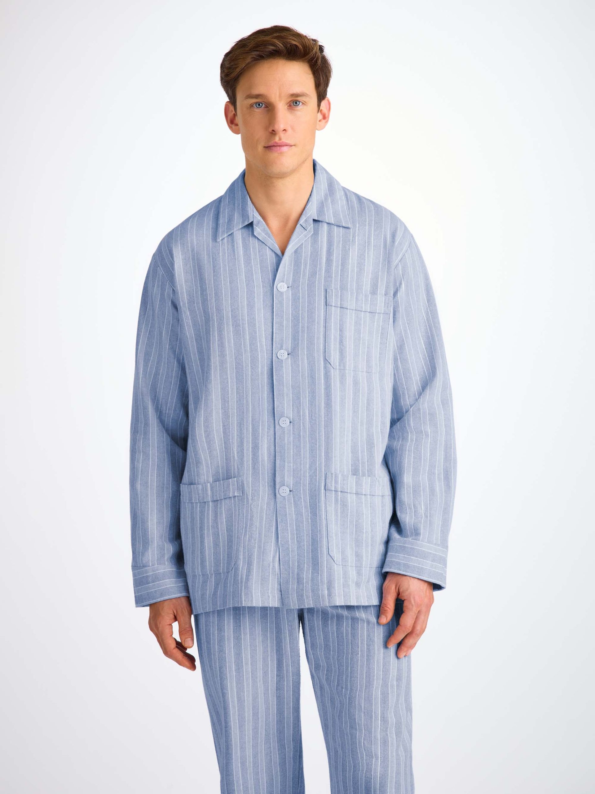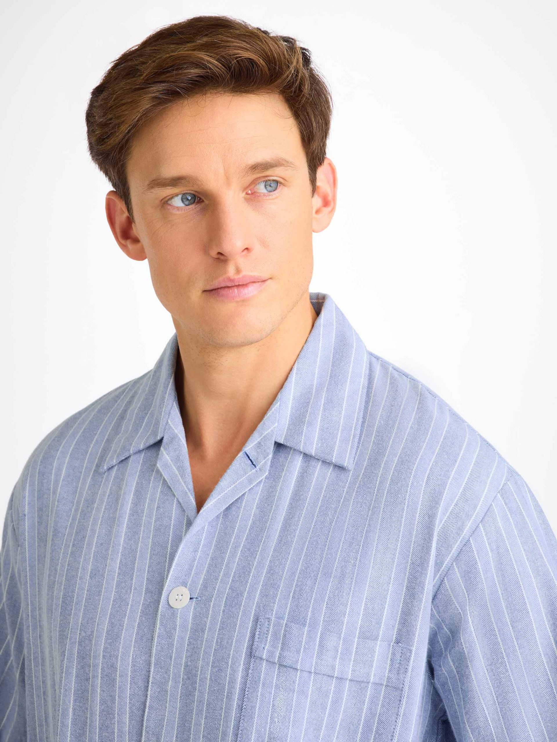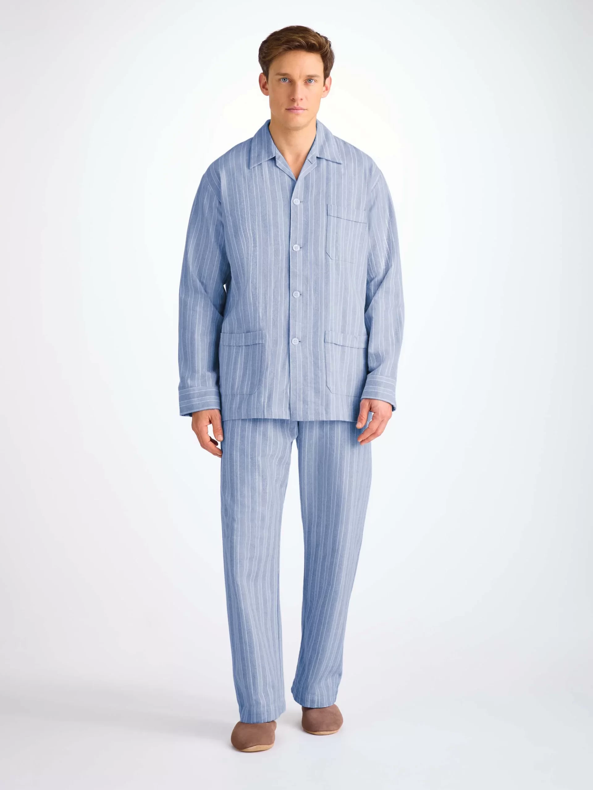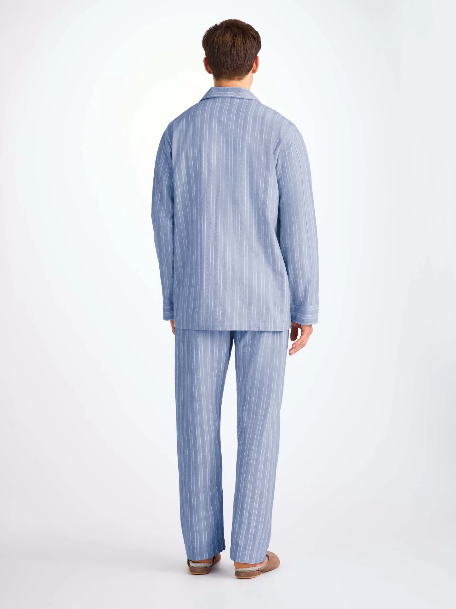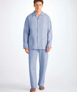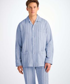 DEREK ROSE Men’s Classic Fit Pajamas Arran 20 Brushed Cotton Blue Mid Blue | MENS- Best Sellers