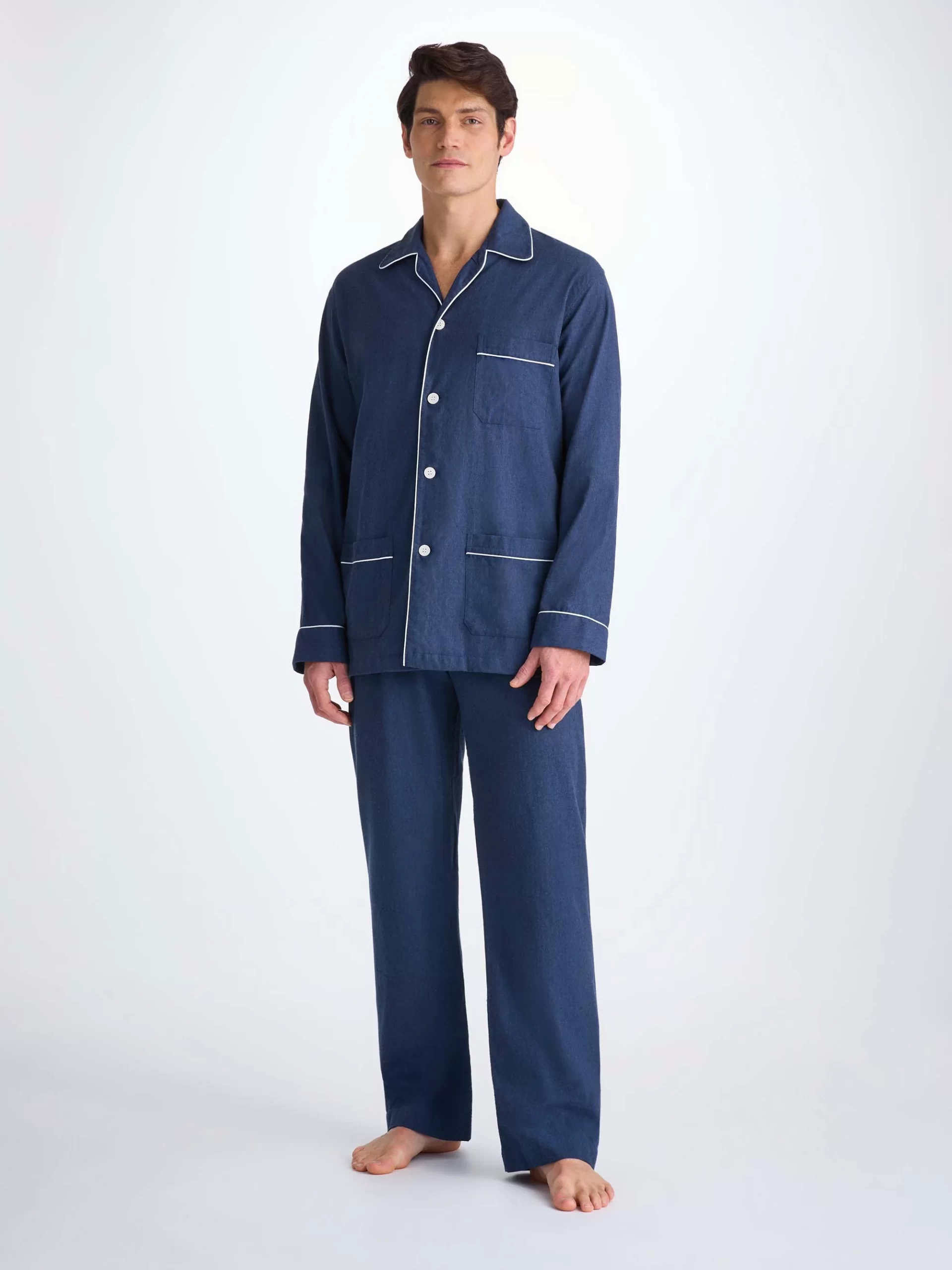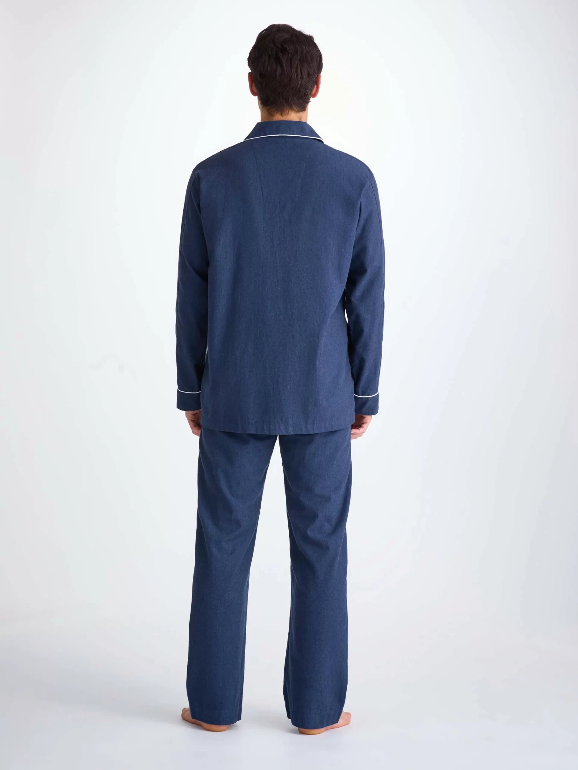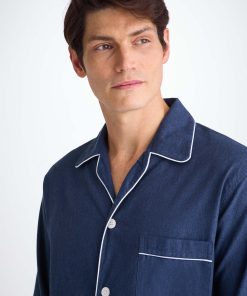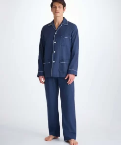 DEREK ROSE Men’s Classic Fit Pajamas Balmoral 3 Brushed Cotton Navy Navy | MENS- Best Sellers